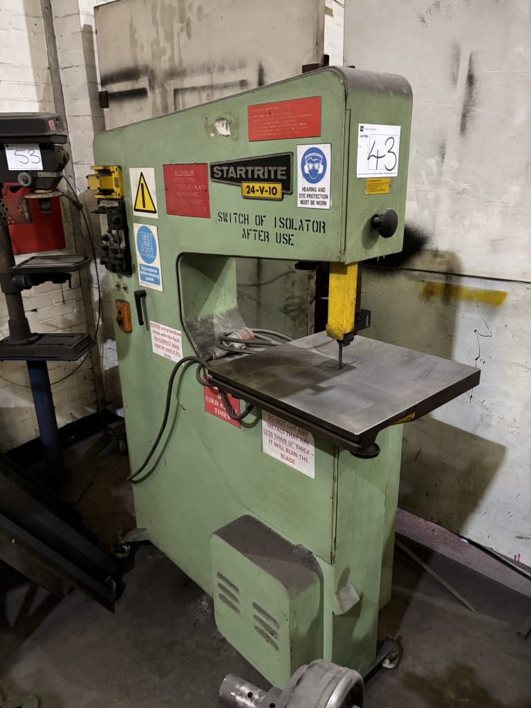 - ViewStartrite 24-V-10 Vertical Bandsaw With Startrite Ideal Blade Welder/GrinderSwivel Table Dimension 480 x 480mm. Maximum Swivel 45°. Throat 600mm. Voltage 415V. S/No. 61238.Sale has ended